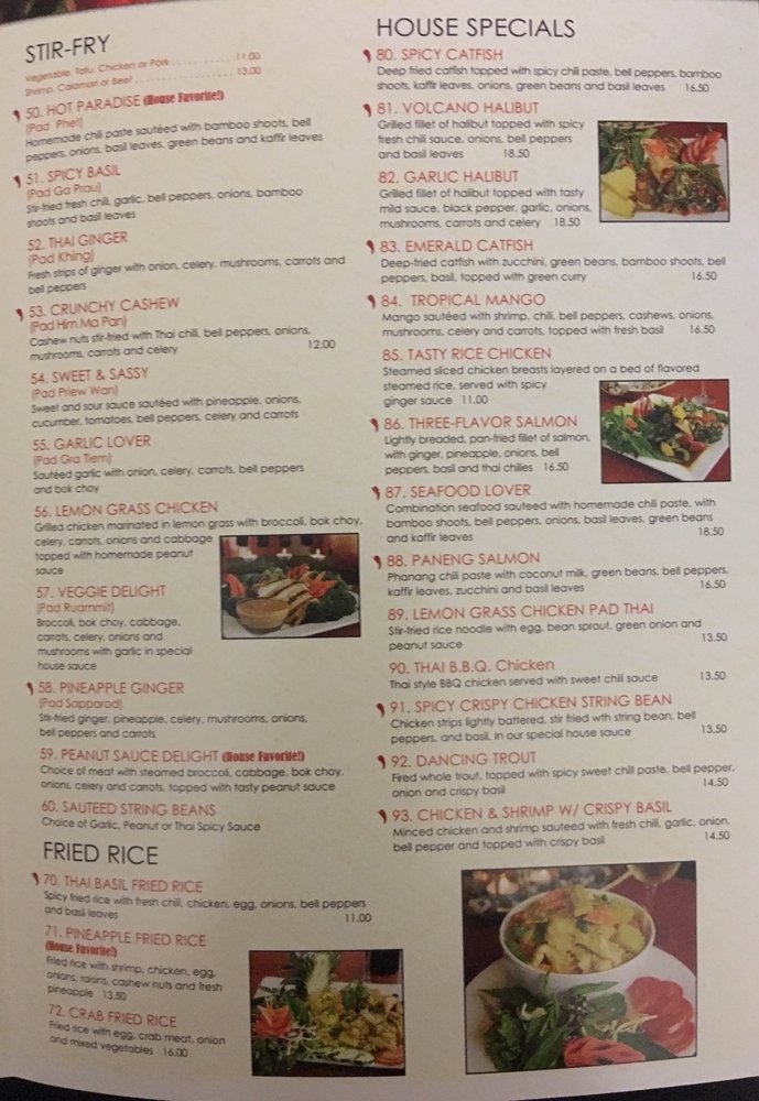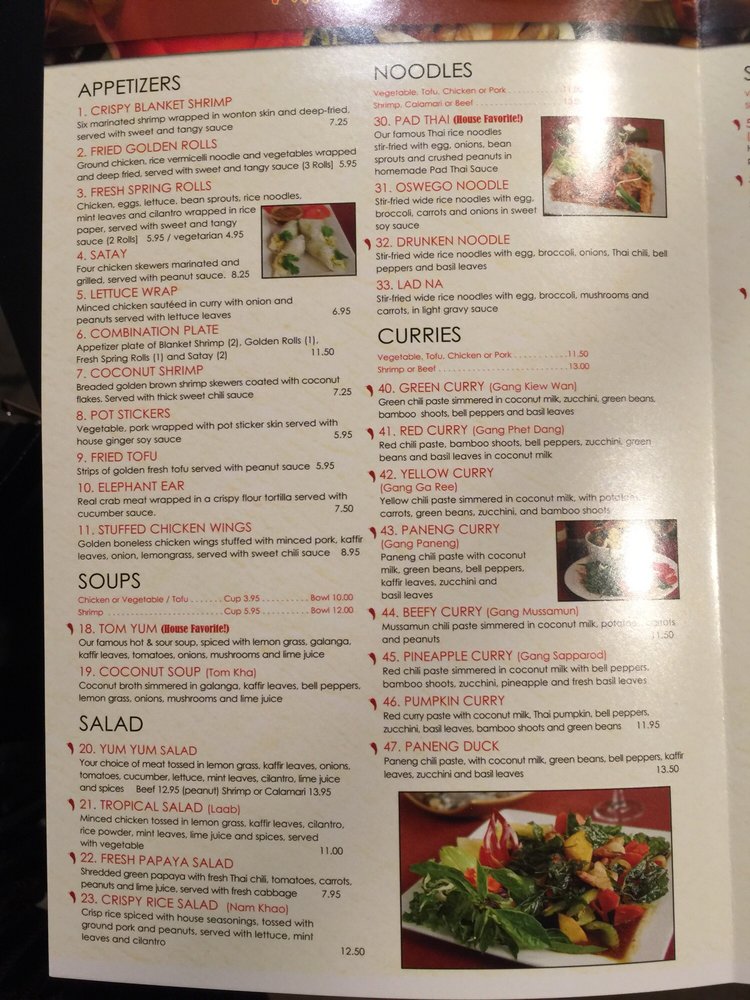 Highlighted dishes include the yellow curry, drunken noodles, pad Thai, and hot paradise. Customers rave about the flavorful food and fast service, making it a popular spot for both lunch and dinner. The spring rolls are a favorite starter, with a perfect balance of sweetness and spice in the sauce.